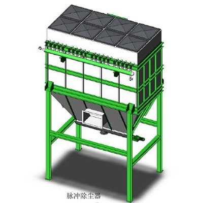 含尘气流从进气口进入箱体后,部分沉降,轻微粉尘浮动时被滤袋阻留,净化空气透过滤袋,经文氏管进入上箱体,从出气口排出。积附在滤袋外壁的粉尘不断增加,当阻力在限定的范围内(一般为80-120毫米水柱),就要清除积附的滤袋外壁的粉尘,清灰是由控制器顺序触发各控制阀,使气包内的压缩空气由喷吹管孔喷出(一次风),通过文氏管诱导数倍于一次风的周围空气(二次风)进入滤袋,使滤袋在一瞬间急剧膨胀并伴随着气流的反作风,抖落粉尘,被抖落的粉尘落入灰门经排灰阀排出机体。