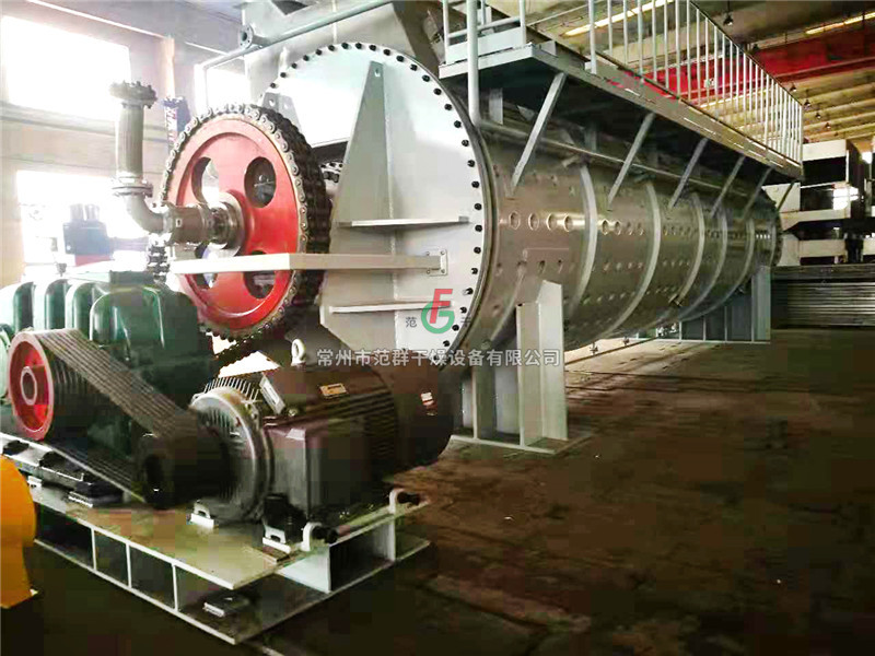 2.动力消耗低、噪音小。由于干燥过程中料层很薄,主轴转速低,物料传送系统所需的功率小,电耗很少,其全套干燥装置动力消耗仅是对流方式传热装置动力消耗的1/5~1/7,且噪音很小。