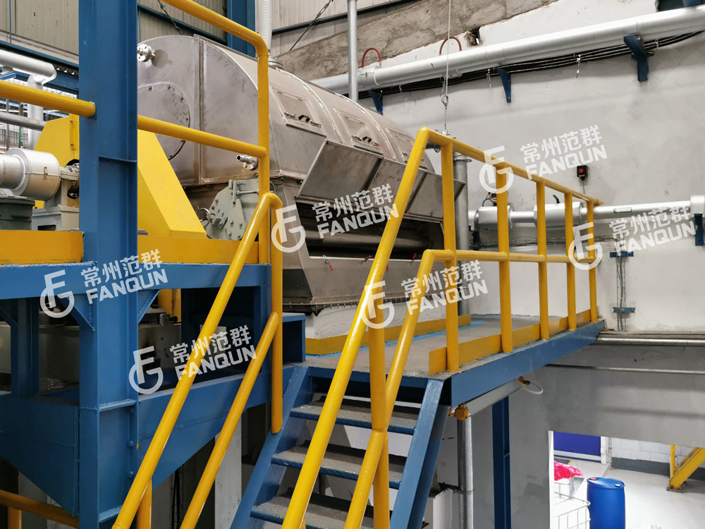 3.干燥时间短。物料的干燥周期一般只有10-15秒,适合于热敏性物料。若将滚筒干燥机设置在真空器中,则可在减压条件下运行。