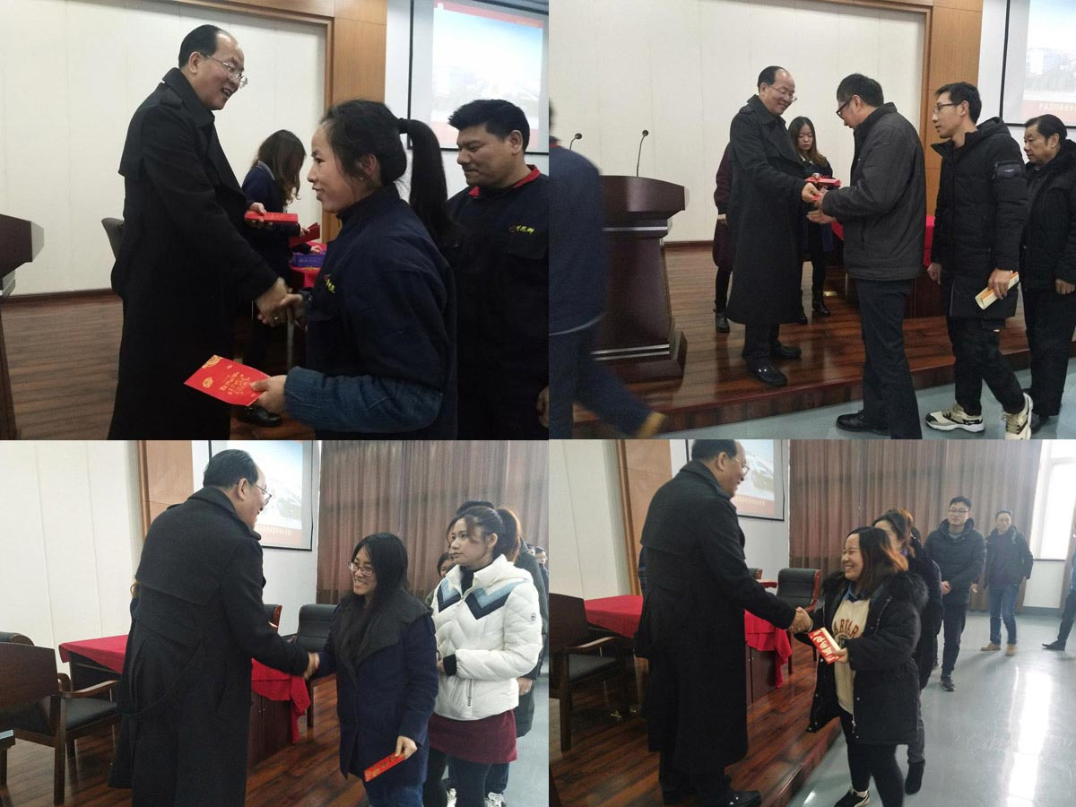 董事长范炳洪为感谢全体员工一直以来对公司的辛勤付出和努力,给每个员工颁发了现金大红包和新年祝福并对还奋斗在一线的员工表示亲切的问候和红包奖励
