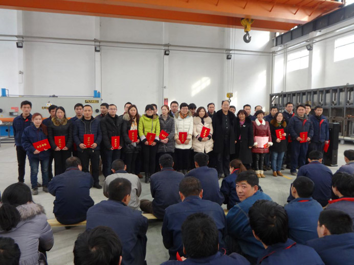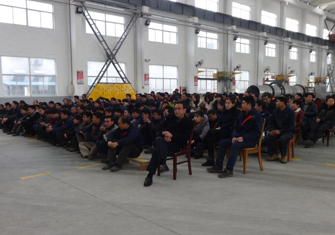 2015年3月2日下午3点,在公司(常州范群干燥设备有限公司)的重型车间里,召开2015年全体职工大会,公司董事长范总和各部门领导及全体员工出席了大会。会议由企管部蔡部长主持。