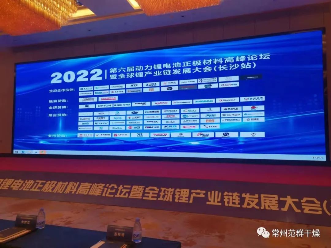2022年第六届动力锂电池正极材料高峰论坛暨全球锂产业链发展大会于2022年2月24日在湖南长沙顺利召开,常州范群受邀出席大会。