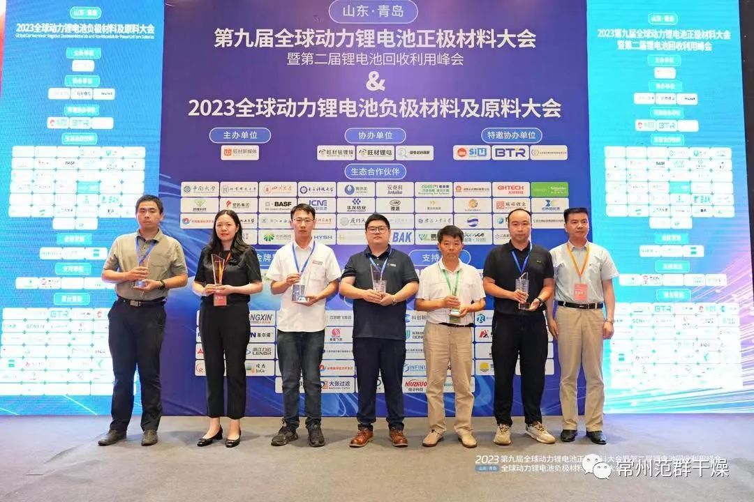 2023 年7月 6-7日,旺材锂电在青岛举办了“2023第九届全球动力锂电池正极材料大会暨第二届锂电池回收利用峰会”,常州范群获得旺材锂电“金翎奖”优质供应商企业。