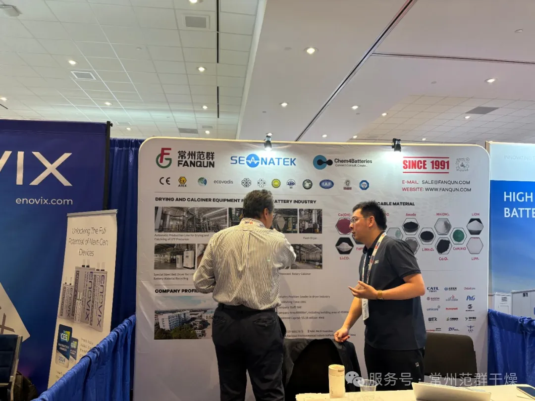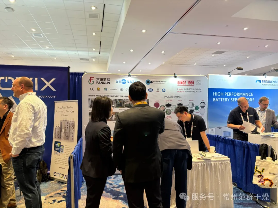 在为期三天的展会中,常州范群重点展示了其针对锂电池干燥系统,包括喷雾干燥机、旋转闪蒸干燥机、回转窑等核心产品。这些设备以其高精度控温、低能耗设计及智能化操作等特点,吸引了众多国际客户的关注。