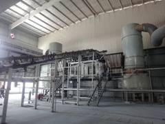 由赢博·(中国)官方网站生产的2万吨/年白碳黑干燥装置日前在浙江横店通过验收,该装置由燃煤热风系统、加料系统、闪蒸干燥系统、布袋收尘系统、自动包装系统等组成。针对白碳黑滤饼含水量高、耐温高及产品比重小的特点,热源采用了间接式燃煤热风炉,热风温度高达500℃以上,进料系统采用皮带输送和螺旋加料相结合,干燥主机采用直径2米的闪蒸干燥机,直接配套布袋除尘器收集产品,并由自动包装机完成产品包装。整套装置自动化程度高,在人员配置及吨耗等重要指标达到了设计水平。