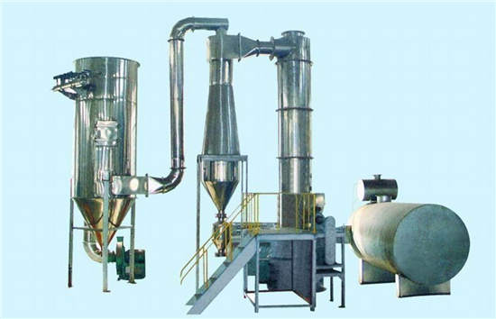 颗粒中的水分为干燥最终水分,通常不应低于贮存时的平衡水分。旋转闪蒸干燥机由于干燥后物料颗粒很小,在干燥机内停留的时间极短,通常为1~3s。因此,颗粒的干燥处于等速干燥阶段,其表面的温度就是干燥介质的湿球温度。采用旋转闪蒸干燥机,物料的粒度均匀,有利于保证产品质量。