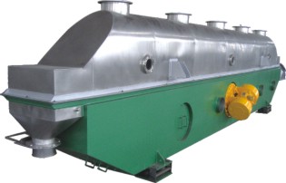 物料自进料进口进入机内,在振动力作用下,物料沿水平面流化床抛掷,向前连续运动,热风向上穿过流化床同湿物料换热后,湿空气经旋风分离器除尘后由排风1:3排出,干燥物料由排料进口排出。