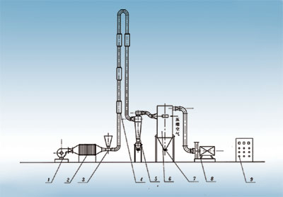 在干燥操作中主要控制干燥机中的空气流量、空气进口和出口温度、加料量。其中加料量做为从属变量进行调节。